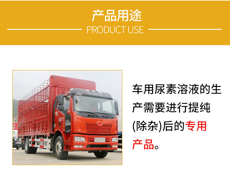 海藍車用尿素原料,是心連心公司農業(yè)尿素的升級產(chǎn)品。是在農業(yè)尿素生產(chǎn)線的基礎上專門針對車用尿素溶液的生產(chǎn)需要進行提純(除雜)后的專用產(chǎn)品。用車用尿素溶液原料生產(chǎn)車用尿素溶液,無需其他的提純過程,只需將原料和超純水按照1:2的比例配制、溶解和過濾即可,所得產(chǎn)品可同時滿足國際、國家標準的指標要求。車用尿素溶液是用不含其他任何添加物的車用尿素溶液和純水一起配制的溶液,車用尿素溶液含量為32.5%(質量分數(shù))。